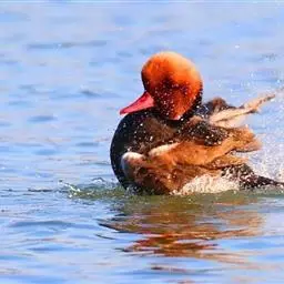 赤嘴潜鸭俗称大红头,是大型鸭类,个体比绿头鸭小,体长45-55厘米,体重1千克左右。雄鸟头浓栗色,…