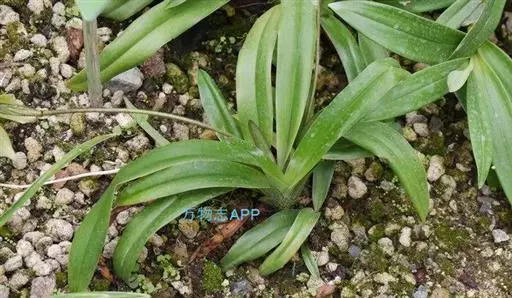 叶基生,二列,5-6枚;叶片宽线形,长8-19厘米,宽7-18毫米,先端略钝或有时具2小齿,基部收狭成叶柄状并对折而互相套叠,无毛或近基部边缘略有缘毛。