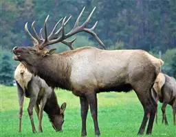 野猪(图5) 野猪的食物很杂,只要能吃的东西都吃,包括草、果实、坚果、根、昆虫、鸟蛋、大家鼠、腐肉,甚至也会吃野兔和鹿崽等。野猪冬天喜欢居住在向阳山坡的栎树林中,因为阳坡温暖,而且栎林落叶层下有大量橡果,野猪要靠它度过寒冬。一旦橡果绝收,第二年春天就会有大量野猪饿死,这也是野猪自然淘汰的规律。夏季,野猪喜欢居住在离水源近的地方,特别是亚高山草甸,山高气温低,又有天然水池,野猪便经常在这里取食,在泥水中洗浴。阴坡山杨、白桦林、落叶松林、云杉林也都是野猪夏季经常活动的良好场所。野猪的食物也丰富多了,青草、土壤中的蠕虫都是它的取食对象,有时还偷食鸟卵,特别是松鸡、雉鸡的卵和雏鸟。虽然鸟巢一般都隐蔽得很好,但野猪的嗅觉很灵,能嗅到巢的位置。通常孵卵的雌鸟都会很快飞出,希望能把野猪从巢的旁边引开,但知道一窝鸟卵就在附近的野猪还是继续寻找鸟巢,直到发现为止。野猪不仅善于捕食兔、老鼠等,还能捕食蝎子和蛇,虽然科学家就野猪是否对毒素有免疫力还没有一致的意见,但是野猪看起来没有遭受因为吃这些危险食品而引起的痛苦。饿极了的雄性野猪会捕食幼年的豹、豺狗。
