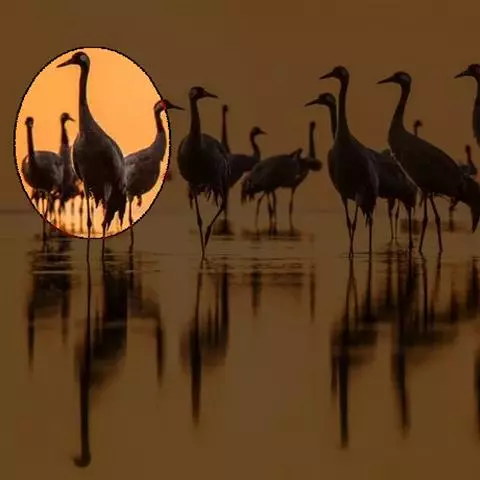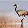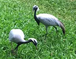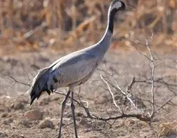 蓑羽鹤大型涉禽,体长68~92厘米,是鹤类中个体最小者。通体蓝灰色,眼先、头侧、喉和前颈黑色,…