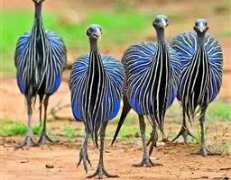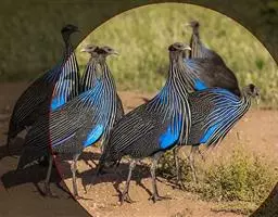 鹫珠鸡:是珠鸡科中体形最大的一种,因头颈部像兀鹫而得名。雌雄羽色相似,为黑色基底上遍布白色点斑,…