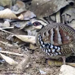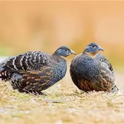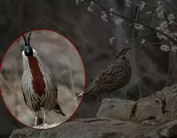 褐胸山鹧鸪:雄鸟体长22厘米,体重310克;雌鸟体长23厘米,体重220-275克。前额皮黄白色,…