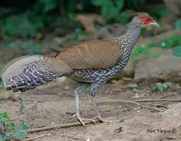 红腹角雉属于鸡形目雉科,雄鸟体羽及两翅主要为深栗红色,满布具黑缘的灰色眼状斑,下体灰斑大而色浅。雌…