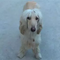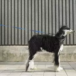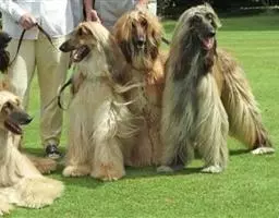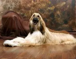 阿富汗猎犬全身披丝绢状的长毛,毛色鲜艳,呈多种颜色,背中线附近毛短,…