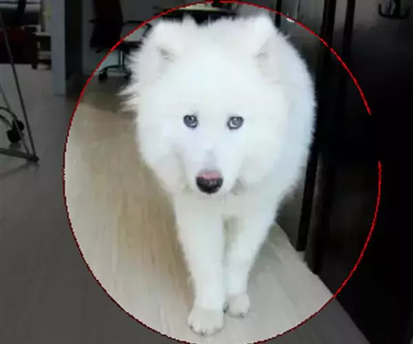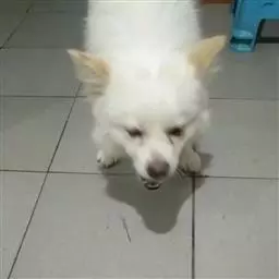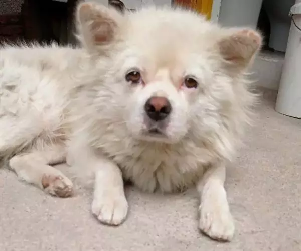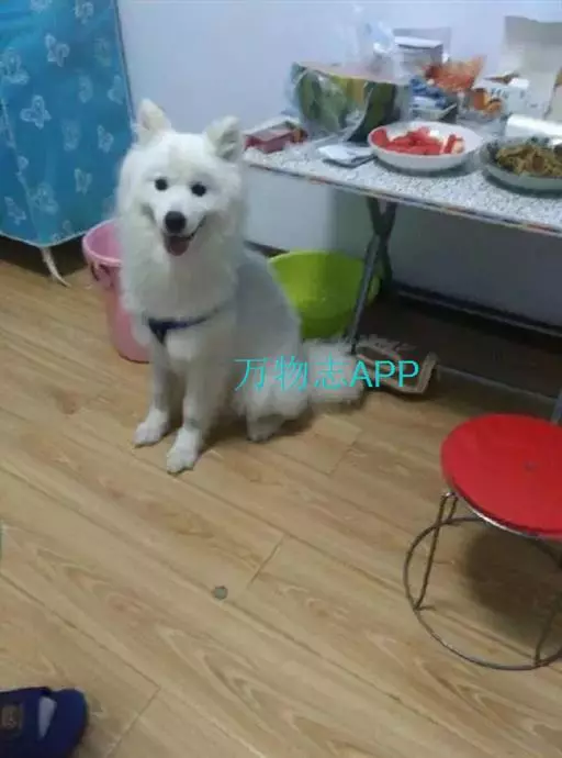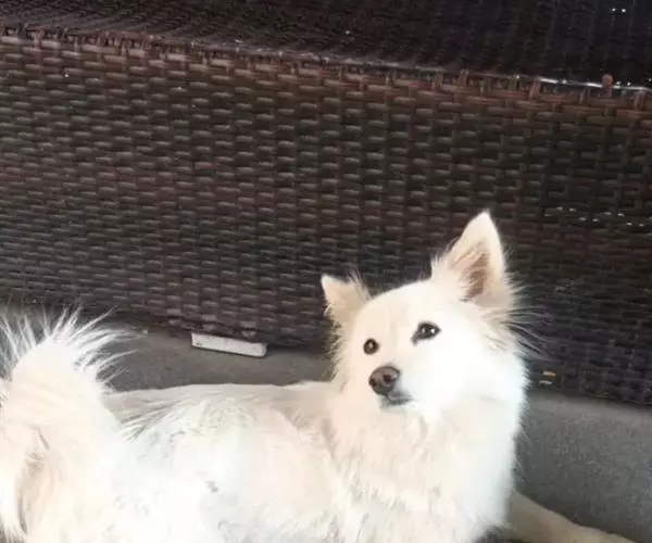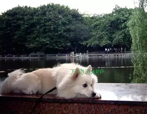 祖先是德国的狐狸犬,从脸部、毛色和蓬松的尾巴可以认出是狐狸犬的一种。尖尖的嘴部和竖立的耳朵很像狐狸,毛长而厚,具有被水弄湿后快干的特征,尾巴梳理成羽毛状,但身体健壮,肌肉发达,背部宽阔。纯白色是最受喜爱的颜色,有时会掺杂奶黄色或淡褐色的斑纹。耳朵竖立,尾巴卷曲,像北极狼一般的脸。