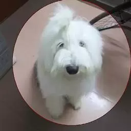 眼 睛 不过分圆,而是略呈卵形。眼睛的位置分地比较开,而且不倾斜,突出或鼓起。泪痕,除非非常严重,否则不属于缺陷。深褐色或中等褐色的眼睛是首选的。眼圈的颜色是黑色或深褐色。睫毛是白色的。(缺陷:琥珀色眼睛或粉红色眼圈;失格:蓝色眼睛)