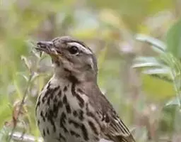 白眉歌鸫,是雀形目鸫科鸫属鸟类。体型略小并具有褐色斑点的歌鸫,上体橄榄褐色,眉纹白色,脸部斑驳,…