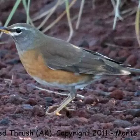 中等体型(24厘米)的暖褐色鸫。腹部及臀白色,上体、翼及尾全褐。雄鸟头及喉近灰;雌鸟头褐色,喉偏白色。雄雌两性胸及两胁均黄褐色。似白眉鸫但无白色眉纹。