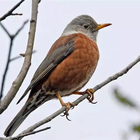灰头鸫:中型鸟类,体长23-27厘米。整个头、颈和上胸褐灰色,两翅和尾黑色,上、下体羽栗棕色。…