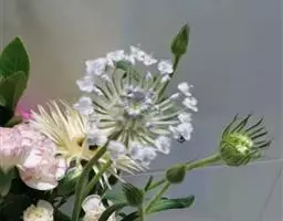 小伞形花序通常有7花,小总苞片3-5,与总苞片相似,顶端针芒状,反折,较小,长3.5-5毫米,宽0.5毫米;花瓣粉红或白色,长圆形,顶端微缺,有内折的小舌片;萼齿钻形,长超过花柱;花柱基圆锥状,花柱短,叉开,柱头头状。