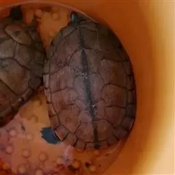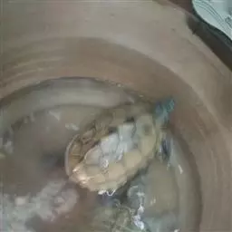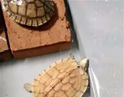 刚破壳孵出的幼龟,待脐带干脱收敛后用1%生理盐水消毒,然后置于水温25-30℃的水箱内,每天换水2-3次,2-3天后恫吸煮熟的麦就、鸡蛋南瓜、米等混合物,或喂切碎的鱼、蚌、肉、动物内脏和居宰下脚料,每天下午15-17时投喂。约50天后,每天上午8时、下午17时各喂1次,投喂量以少有剩余为宜,并及时清除残料,以防败坏水质。冬季幼龟要注意保暖,使之安全越冬,当水温15℃以下时,可用塑料薄膜。