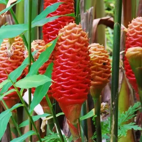 珊瑚姜是姜科、姜属植物。株高近1米。叶片长圆状披针形或披针形,长20-30厘米,宽4-6厘米,…