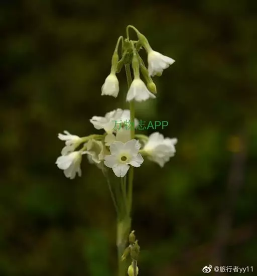 花葶高15-90厘米,顶端微被粉;伞形花序通常2-4轮,每轮5至多花;苞片窄披针形或矩圆形以至卵形,长6-20毫米,宽1.5-5 (8)毫米,绿色或带红褐色,通常被粉;花梗长1-8厘米,被淡黄色粉;花萼钟状或窄钟状,长7-10毫米,具5脉,外面被小腺体和稀薄黄粉,内面密被黄粉,分裂达全长的1/4-1/3,裂片三角形至披针形,先端锐尖,微向外反;花冠黄色、紫色或白色,冠筒长11-13毫米,筒口周围被黄粉,冠檐直径1.2-3厘米,裂片阔倒卵形至近圆形,先端具凹缺;长花柱花:雄蕊距冠筒基部约3毫米着生,花柱长达冠筒口;短花柱花:雄蕊近冠筒口着生,花柱长约2毫米。
