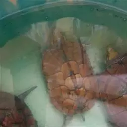 换水频率和方式也要根据缸体大小、养殖密度、投喂饵料来灵活掌握。采用鲜活饲料喂养时,水质容易变坏,视水质情况,1-2周换水一次,1-2个月清理一次过滤桶。以配合饲料喂养时可适当延长换水时间和过滤桶清洗时间,每月换水一次,6个月清理一次过滤桶。由于养殖水温较高,一旦操作不当,过滤系统立即失灵,水质很容易恶化,产生的硫化氢对龟有危害。刚安装的过滤桶最少要一个月才能发挥作用,因此养殖前期要勤换水,减少喂食量。清洗滤材时不要清洗太彻底,只要将附着物冲洗掉就可以,避免揉搓过滤材料,保留一部分硝化细菌。刚洗完的桶可以适当添加硝化菌。