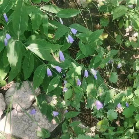 石沙参〔学名:Adenophora polyantha Nakai〕是桔梗科,沙参属多年生草本植物,根胡萝卜状,茎高可达1米,无毛或有各种疏密程度的短毛。基生叶片心状肾形,茎生叶完全无柄,卵形至披针形,花序常不分枝而成假总状花序,或有短的分枝而组成狭圆锥花序。花梗短,花萼通常各式被毛,筒部倒圆锥状,裂片狭三角状披针形,花冠紫色或深蓝色,钟状,喉部常稍稍收缢,花盘筒状,花柱常稍稍伸出花冠,蒴果卵状椭圆形,种子黄棕色,稍扁,8-10月开花。