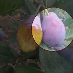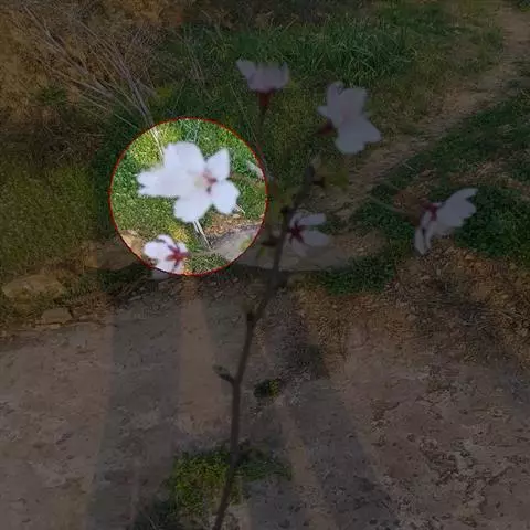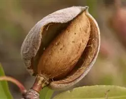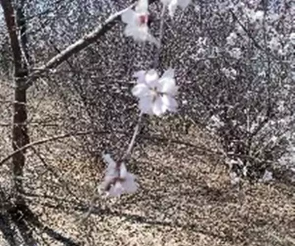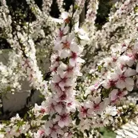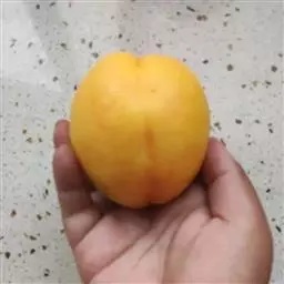 果实近球形,直径2.5-3.5厘米,淡黄色,外面密被短柔毛,果梗短而深人果洼;果肉薄而干,不可食,成熟时不开裂;核球形或近球形,两侧不压扁,顶端圆钝,基部截形,表面具纵、横沟纹和孔穴,与果肉分离。花期3-4月,果期7-8月。