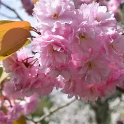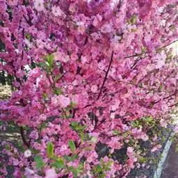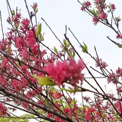 孤植或片状定植乔木山桃比杏树、紫丁香等提早开花8天左右,初春的辽西,乍暖还寒的3月下旬,山桃芽苞在枝干中悄然鼓起,随着气温的上升,展现出艳丽的花朵;夏日里枝繁叶茂,婀娜多姿;秋天,果实累累,挂满枝头;冬日,紫红色的树干,油光发亮,映雪增辉。无论在公园、绿地、小区、庭院还是池畔,适度点缀山桃,都会给景观平添风韵。