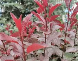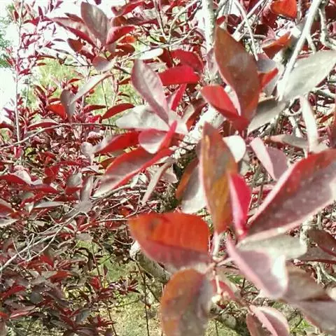 山桃 乔木,高可达10米;树冠开展,树皮暗紫色,光滑;小枝细长,直立,幼时无毛,老时褐色。叶片卵状披针形,长5-13厘米,宽1.5-4厘米,先端渐尖,基部楔形,两面无毛,叶边具细锐锯齿;叶柄长1-2厘米,无毛,常具腺体。