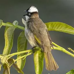 红头咬鹃多单个或成对活动;树栖性,或攀于小乔木的顶枝间啄食野果,或静立于树桠上俟机突袭飞过的昆虫,偶尔也尾随着飞虫而去,飞行力较差,虽快而不远,叫声有点像支离的猫叫声,一般似“shiu”的3声断续,从容不迫地发出,大概1分钟叫5、6次,冲击捕虫时或惊恐时也常发出似“krak”的单噪声,但平时甚静,不但栖止时不爱叫,来来去去也甚寂静。性胆怯而孤僻,常一动不动的垂直的站在树冠层低枝上或藤条上。飞行时多在林间呈上下起伏的波浪式飞行。