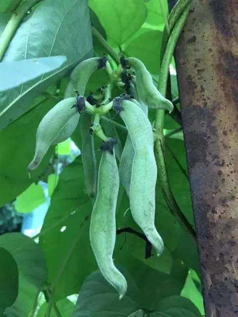 黧豆 Baker ex Burck)是豆科油麻藤属的一年生缠绕藤本植物。枝略被开展的疏柔毛;羽状复叶,…