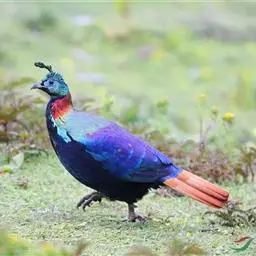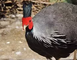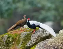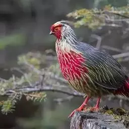 血雉雉科血雉属鸟类,别名血鸡、松花鸡,血雉的雄鸟大覆羽、尾下覆羽、尾上覆羽、脚、头侧、腊膜为红色,…