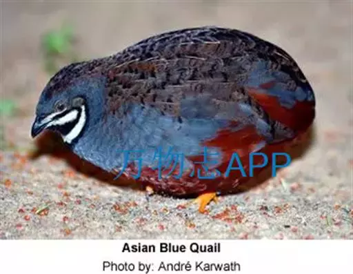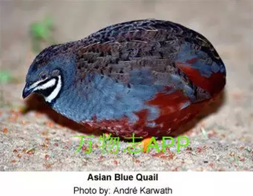 蓝胸鹑(学名:Synoicus chinensis):是雉科蓝胸鹑属的鸟类,体形小于普通鹌鹑,全长12厘米,体重35-48克。在羽色上,雌雄差异很大;雄鸟羽色十分鲜明显耀,喉部中央具一大型黑斑,围以白色;胸部蓝色;腰部至尾下覆羽栗紫色;雌鸟羽色与普通鹌鹑近似。