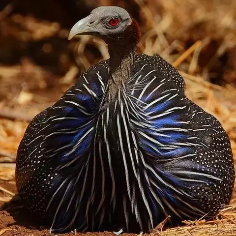 黑长尾雉大型鸡类,体长53~88厘米。雄较雌大。雄鸟通体紫蓝色,脸鲜红色,翅上有一条显著的白色翅斑…