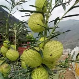蓇葖双生,直立,平行或略叉开,长约2.5厘米,直径3毫米;外果皮厚纸质,有条纹,被柔毛;种子黑色,长圆状圆筒形,两端截形,具有颗粒状小瘤。花期、果期几乎全年。