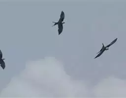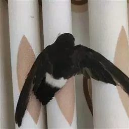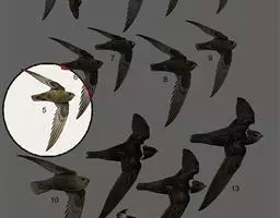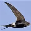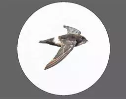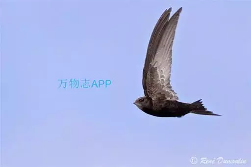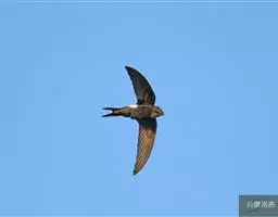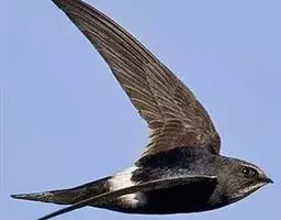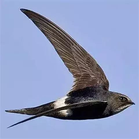普通楼燕(学名:Apus apus):是一种体长21厘米的雨燕。尾略叉开,特征为白色的喉及胸部为一道深褐色的横带所隔开。两翼相当宽。虹膜褐色;嘴黑色;脚黑色。振翅频率相对较慢。白天常成群在空中飞翔捕食。尤以晨昏、阴天和雨前最为活跃。飞翔疾速,时速可达110千米。