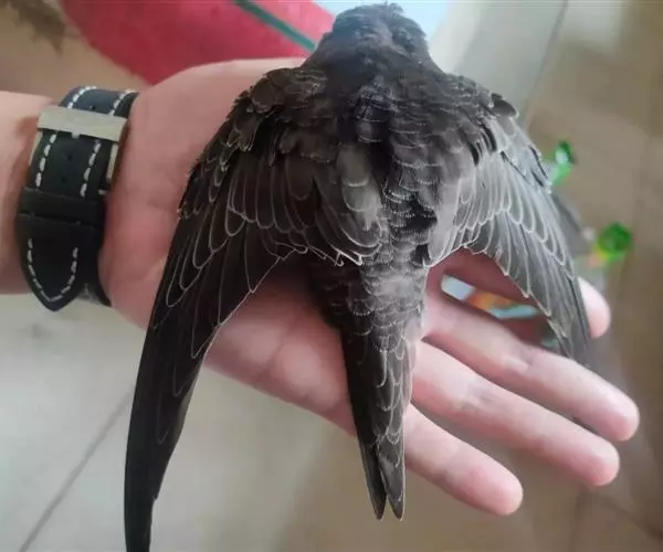 普通楼燕头和上体黑褐色,头顶和背羽色较深暗,并略具光泽。两翅狭长,呈镰刀状,两翅初级飞羽外侧和尾表面微具铜绿色光泽。尾叉状。颏、喉灰白色,微具淡褐色纤细羽干纹。胸、腹和尾下覆羽黑褐色,腹微具窄的灰白色羽缘。虹膜暗褐色,嘴短阔而平扁,纯黑色,脚黑褐色。