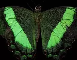 荧光裳凤蝶是凤蝶科裳凤蝶属的一种大型蝴蝶,该物种共有3个亚种。该蝶飞翔的时候姿态优美,前翅黑色,后…