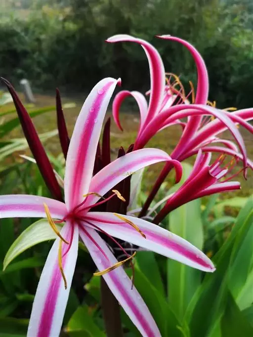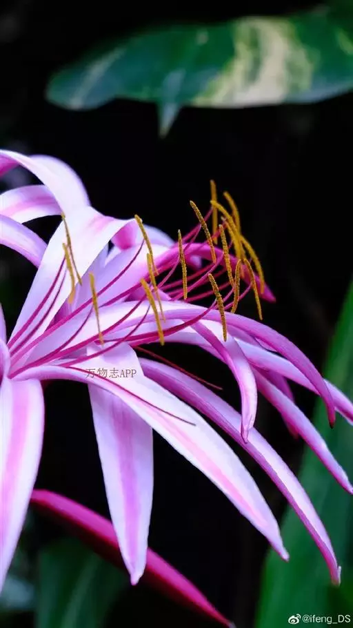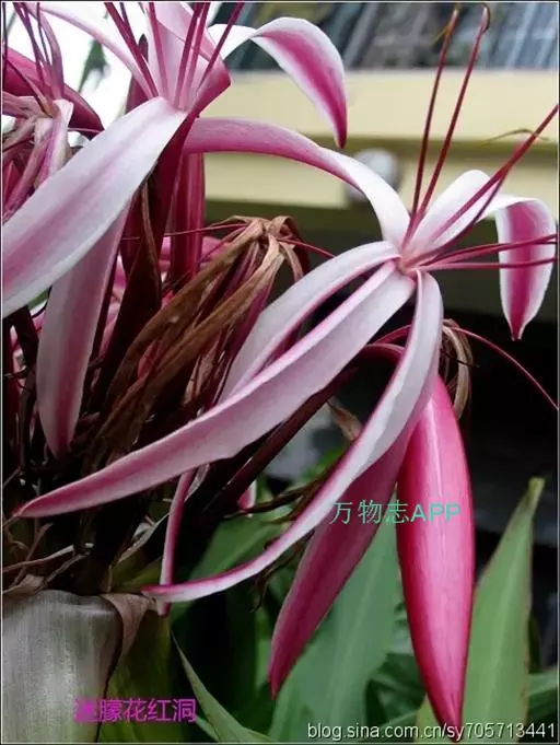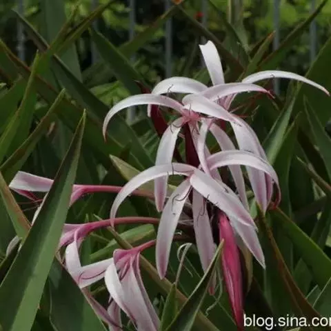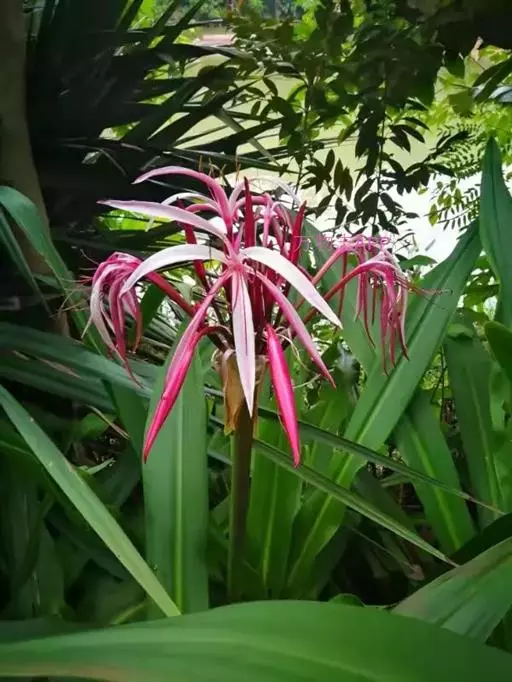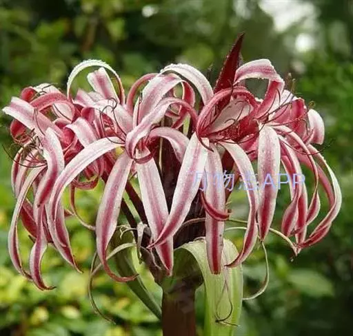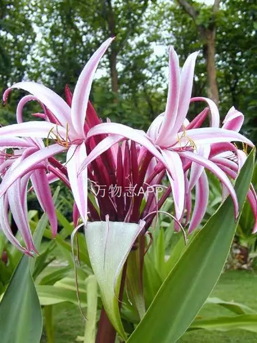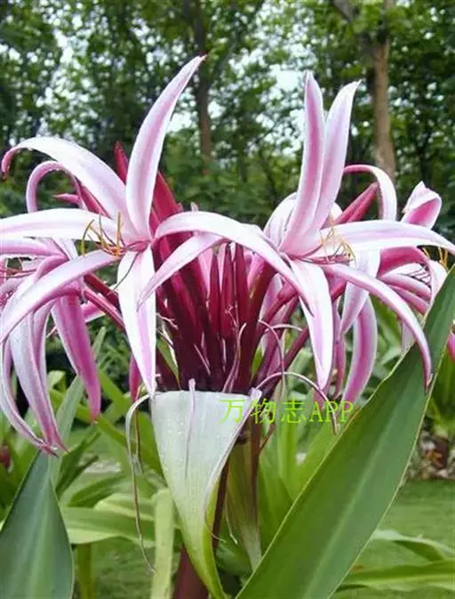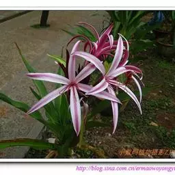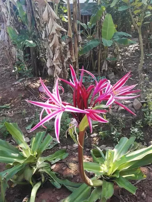 红花文殊兰又名西南文殊兰,拉丁文名Crinum latifolium L.多年生粗壮草本。分布于广西、贵州、云南。常生于河床、沙地。越南至印度及马来西亚也有分布。