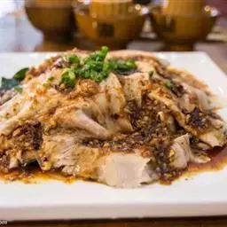 4、猪瘦肉洗净沥干水,用3小匙精盐腌3小时至入味,再放入蒸锅蒸20分钟取出切片。