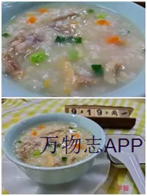 皮蛋瘦肉粥,是一种广东省的地方传统著名小吃。皮蛋瘦肉粥营养丰富,以切成小块的皮蛋及咸瘦肉为配料。不同地区的配料有所不同,有人会在进食前加上香油及葱花,或者加葱花及薄脆。