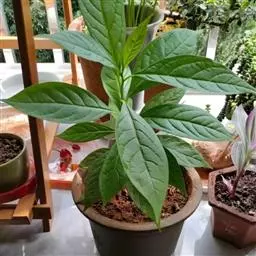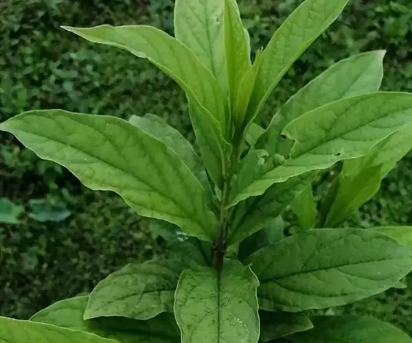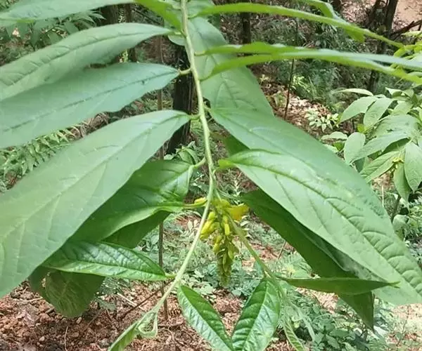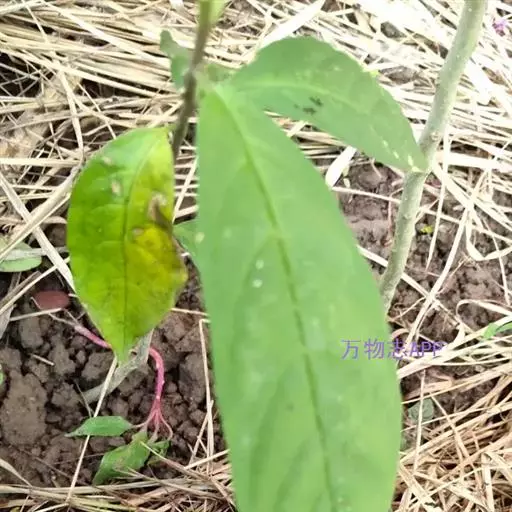 单叶互生,叶片膜质,披针形至椭圆状披针形,长8-17(-20)厘米,宽4-6.5厘米,先端渐尖,基部楔形至钝圆,全缘,叶面深绿色,背面淡绿色,两面均被短柔毛,主脉上面凹陷,背面隆起,侧脉8-9对,背面突起,于边缘网结,细脉网状,明显;叶柄长9-14毫米,上面具槽,被短柔毛。