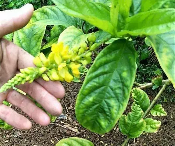 黄花倒水莲 灌木或小乔木,高1-3米;根粗壮,多分枝,表皮淡黄色。枝灰绿色,密被长而平展的短柔毛。