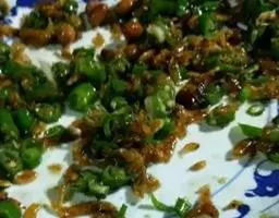 8激香与润色:倒完油后搅动辣子到不冒泡时,倒入岐山用玉米、麦子、高粱等酿制的粮食醋数滴,马上搅动辣子,可见辣子再次沸腾冒泡一股香气腾起。激香的后辣子色泽鲜红油亮,闻之散发出浓浓略微带点酸味醇香的气味。激香后再等辣子不冒泡的时候,在辣子中加入少量的白糖,搅拌均匀,使白糖充分利用辣子的余热溶解于油泼辣子中。润色后的油泼辣子颜色方面显得红润厚重,辣子油显得较为粘稠(比起一般不加白糖的油泼辣子那清汤寡水的外观强太多啦)。此时的的油泼辣子因为白糖的缘故增加了一个新特性,比如调面条时会发现绝大部分的辣子油都粘在面条上,使面条颜色诱人,而碗边粘的辣子并不多,充分体现了好钢用在刀刃上,决不浪费的古老陕西农民的纯朴民风。