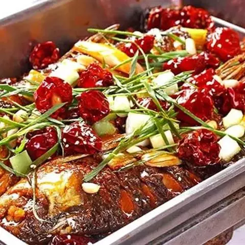 7配作料:将三奈,八角、香果、桂皮、花椒,研成极细的粉末,配成调料面。用旺火烧十成热,离火,待油温降至五成热时,加入辣椒面、调料面加热到十成后关火静置到不冒油烟时,分成三次倒入辣子罐油泼辣子面,每次都要搅动均匀以免油泼不均匀,有的地方糊了,有的地方没泼到还是生的。即成调料辣椒油。同时把精盐化成盐水。