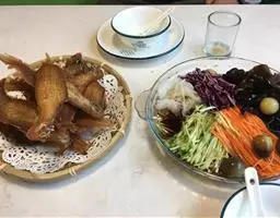 指的是一碗调好的凉皮,再配以一碗黑米稀饭来一个肉夹馍,简直是黄金搭档有吃有喝,舒舒服服。还有的人再配以一壶黄酒(也是一种大米酿成的低度保健酒),或自斟自饮,或邀一二知己对饮,悠哉尤哉,那分惬意,只有现场品味方能获得。