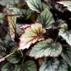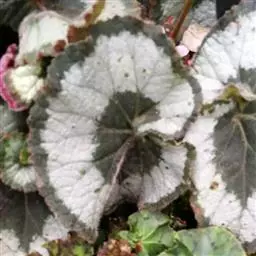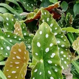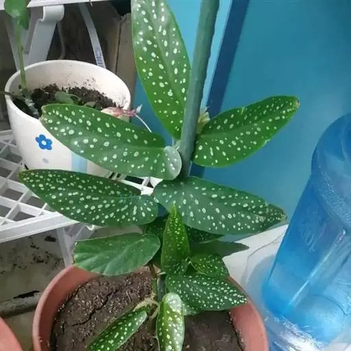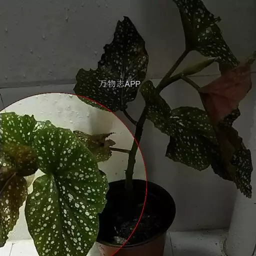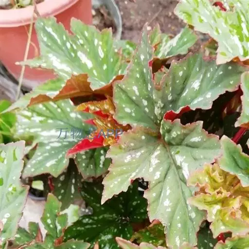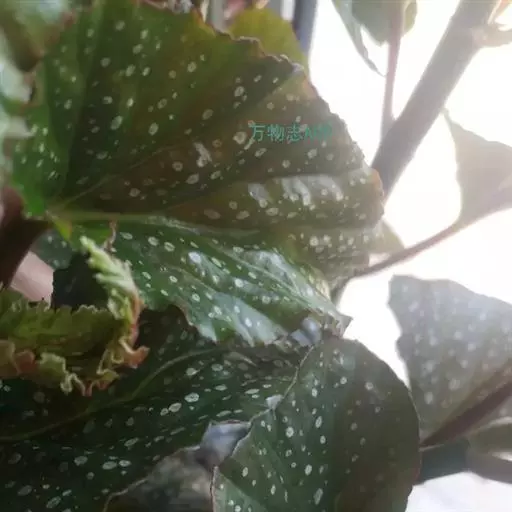 竹节秋海棠同属相似种银星秋海棠。叶绿色,有光 泽,叶面上有密集的银白色斑点,叶缘有齿或波状棱角,背面绿色。