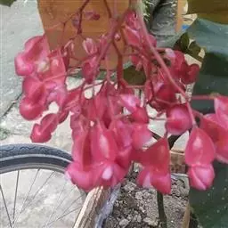 花具伸长的细花梗,花萼红色,花瓣粉红色或白色,簇生于短总梗上;雄花直径约2.5厘米,花被片4,2大2小,雌花花被片5,等大,子房有翅。 花期夏季。