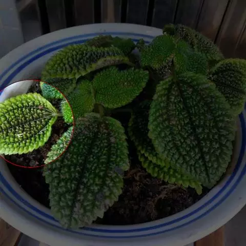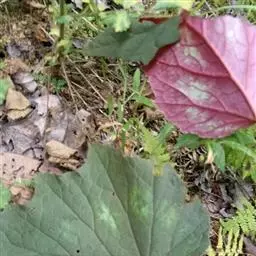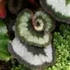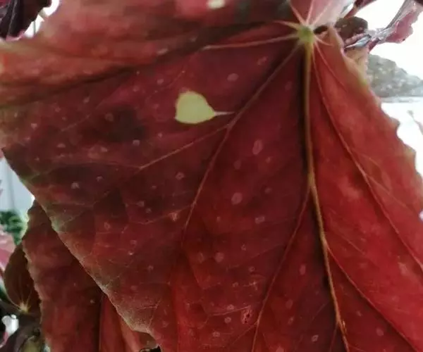 多年生草本。茎直立,平滑,有分枝,高60-100厘米.叶质厚,斜长圆形至长圆状卵形,基部心形,长10-20厘米,叶缘波状,无齿,下面红色,上面有无数圆白点叶片斜椭圆形状披针形,叶表面灰绿色具银白色圆斑玉边缘,叶背面暗红色,在光线作用下叶片呈红褐色,圆斑和边缘呈黄绿色。