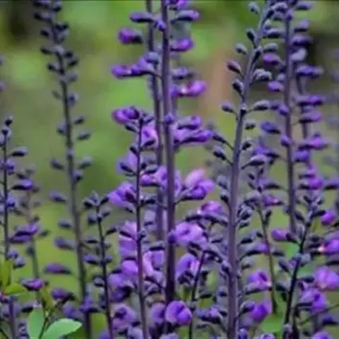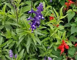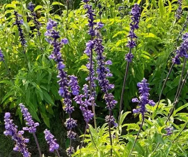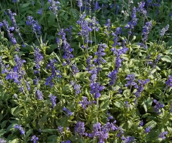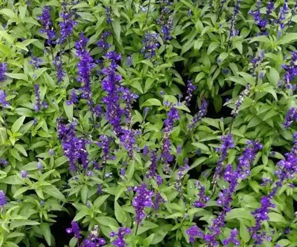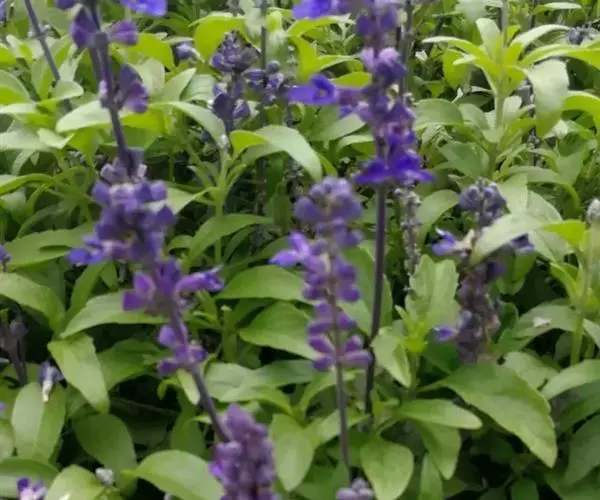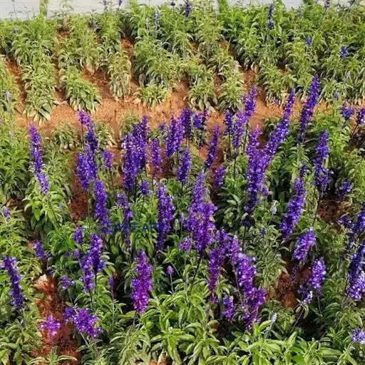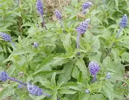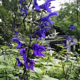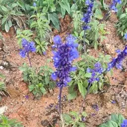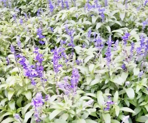 蓝花鼠尾草多年生草本,高度30-60cm,植株呈丛生状,植株被柔毛。茎为四角柱状,且有毛,下部略木质化,呈亚低木状。