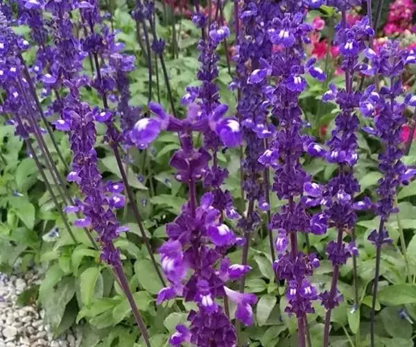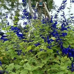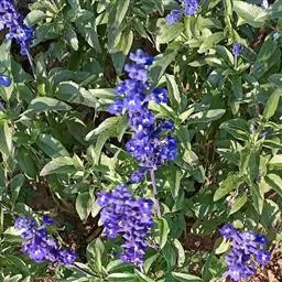 蓝花鼠尾草别称粉萼鼠尾草、一串蓝、蓝丝线等,为鼠尾草属唇形科多年生草本植物,高度30~60厘米,植株呈丛生状,植株被柔毛,盆栽适用于花坛、花境和园林景点的布置,也可点缀岩石旁、林缘空隙地,