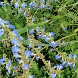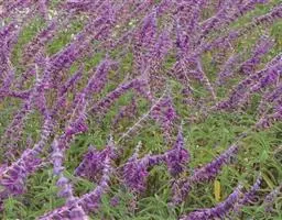 蓝花鼠尾草(学名:Salvia farinaceaBenth.)是唇形科,鼠尾草属多年生草本,高度30-60cm,植株呈丛生状,植株被柔毛。茎为四角柱状,且有毛,下部略木质化,呈亚低木状。叶对生长椭圆形,长3-5cm,灰绿色,叶表有凹凸状织纹,且有折皱,灰白色,香味刺鼻浓郁。具长穗状花序,长约12 cm,花小紫色,花量大,花期夏季,生长强健,耐病虫害。