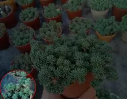 薄雪万年草别名矶小松,景天科景天属多年生草本植物,其细小的蓝绿色棒状叶片环绕生长于茎端,…