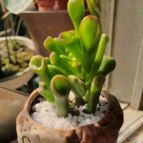 棒叶落地生根是景天科、落地生根属植物。茎直立、粉褐色。叶圆棒形,上表面有沟、粉色,有红褐斑。…