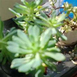 蓝黛莲是一种景天科厚叶草属植物。叶片呈略扁的圆柱形,排列成莲座状;颜色为灰绿色,…