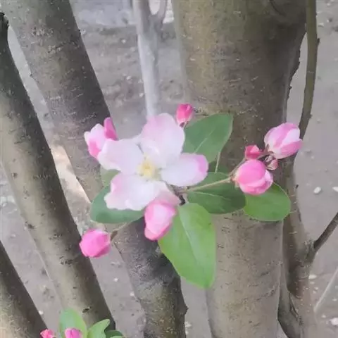 海棠花,蔷薇科苹果属植物,乔木。海棠花小枝粗壮,呈圆柱形;叶片椭圆形至长椭圆形;边缘有紧贴细锯齿,…