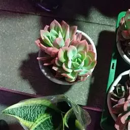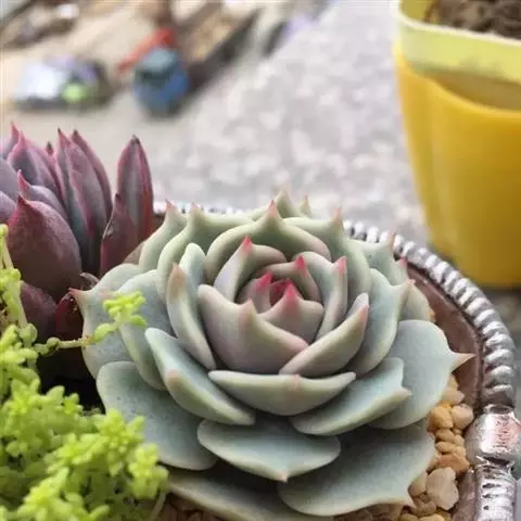 大和锦是景天科拟石莲花属的多肉植物。肉质叶排成紧密的莲座状,广卵形至散三角卵形,背面突起呈龙骨状,…
